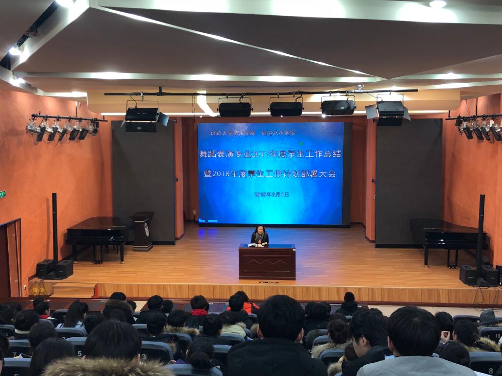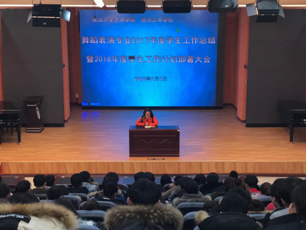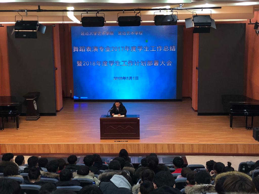 2018年3月1日中午十二点,在艺术学院音乐厅召开了舞蹈表演专业2017年度学生工作总结暨2018年度学生工作部署大会,舞蹈专业全体学生参加。