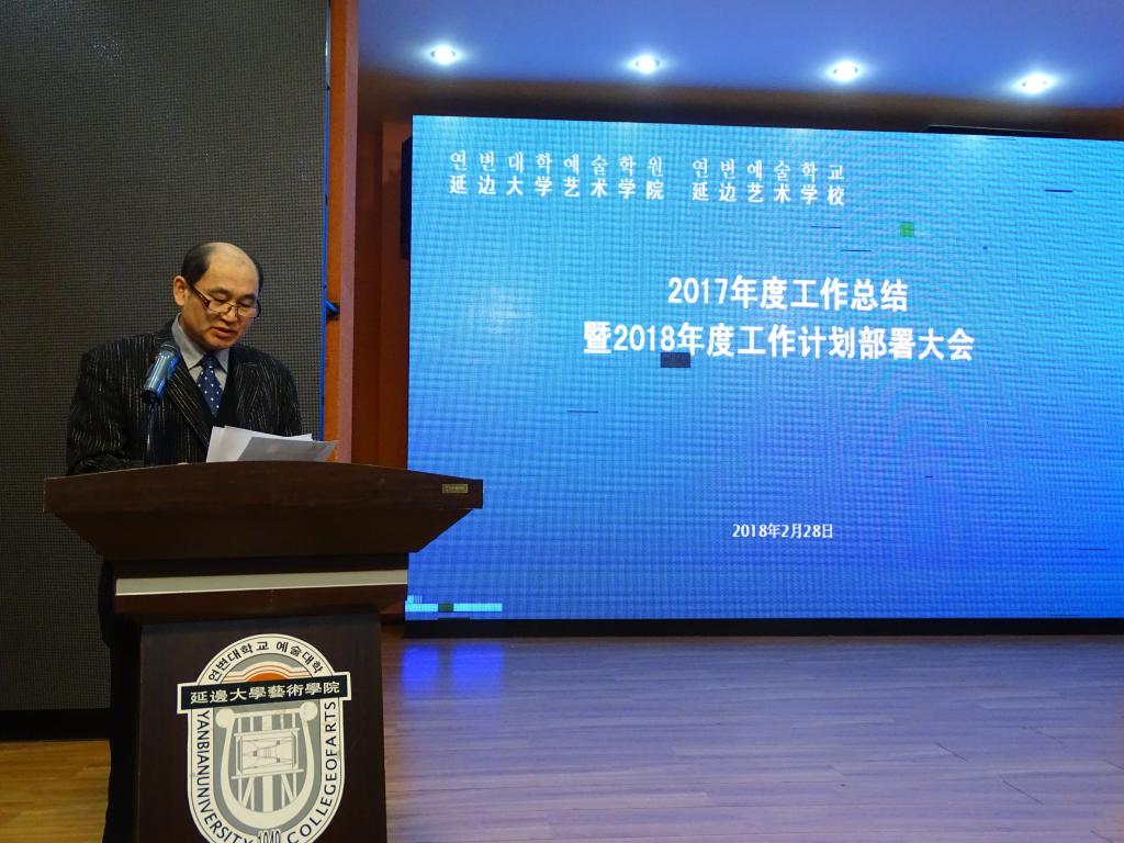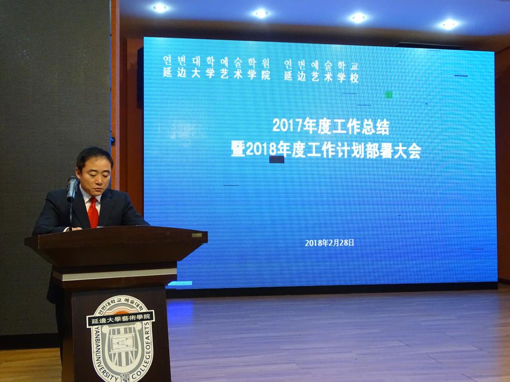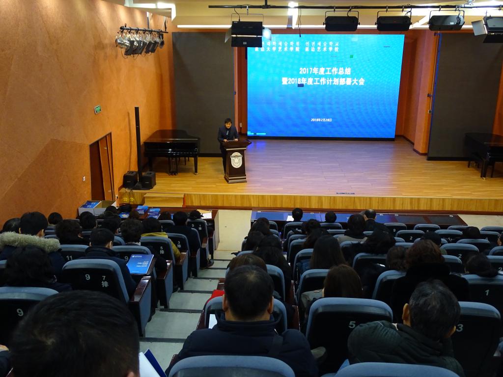 2018年2月28日38365365.com延边艺术学校在艺术学院音乐厅举办2017年度工作总结暨2018年度工作计划部署大会,出席本次大会的有艺术学院延边艺术学校各级领导和全体教职工。